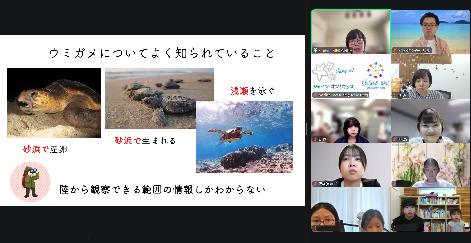 さらに「(ディズニー映画の)ニモに出てくるのは、なにウミガメなんだろう?」という疑問も浮かび、みんなでイラストを見ながらウミガメ調査開始!