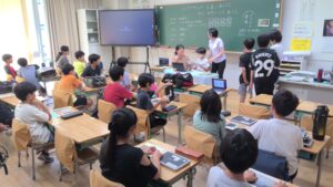 そして、オンライン会議システムを使ってリアルタイムでバングラデシュの村の教室と日本の教室を繋ぎます。