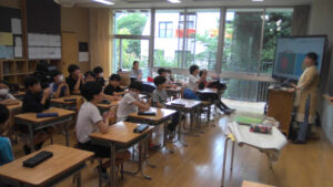 日本の子どもたちは海外の子どもたちに発表するので緊張ぎみでしたが、全員がしっかりと発表し、積極的に質問をしてくれました。