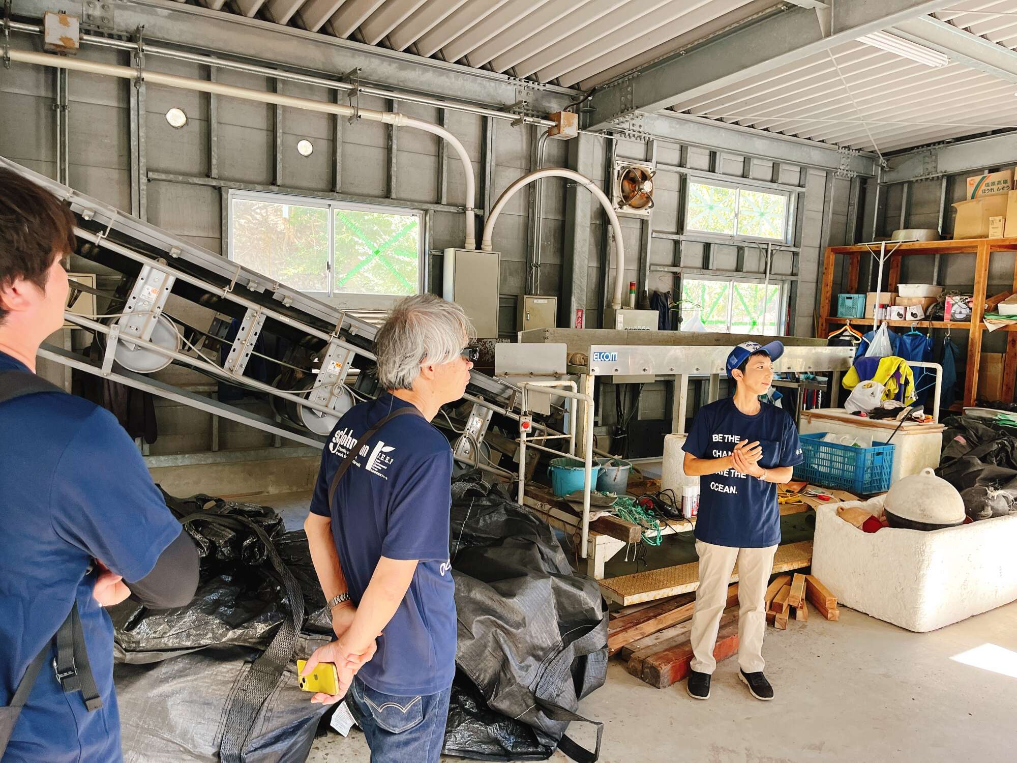 こちらでは、回収された海洋プラスチックを分別・処理して、リサイクルに回せるものと最終処理場に回すものを仕分けています。