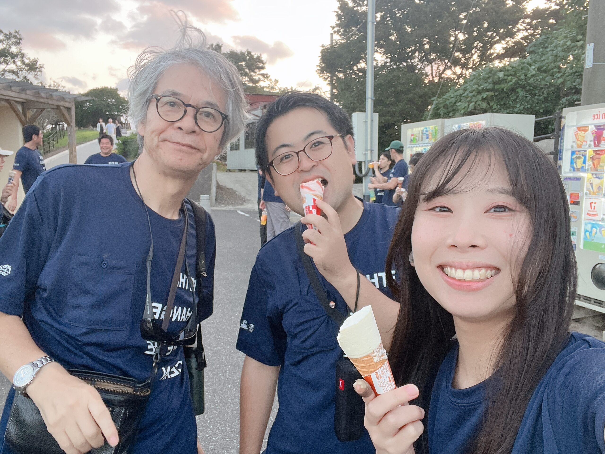 ちなみにこの日着ているお揃いのTシャツは、回収されたペットボトル繊維から作られたものです。