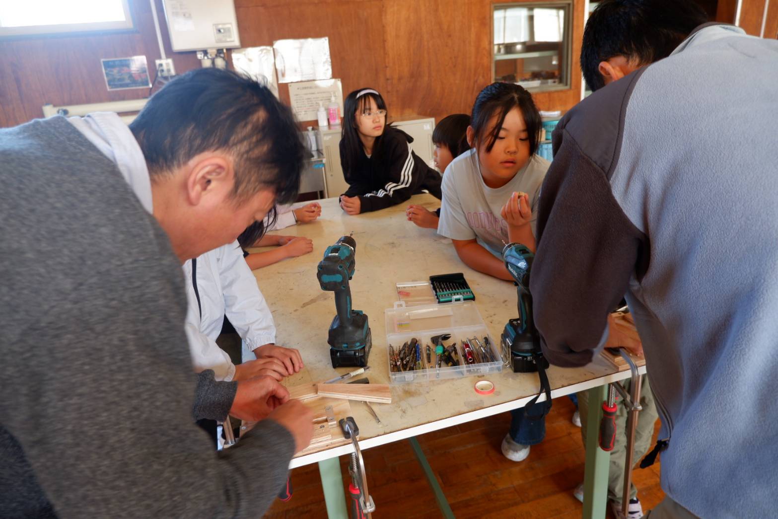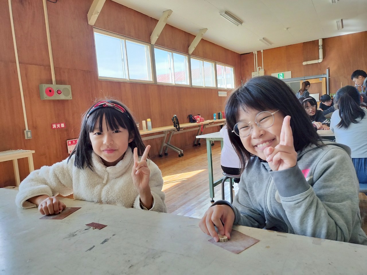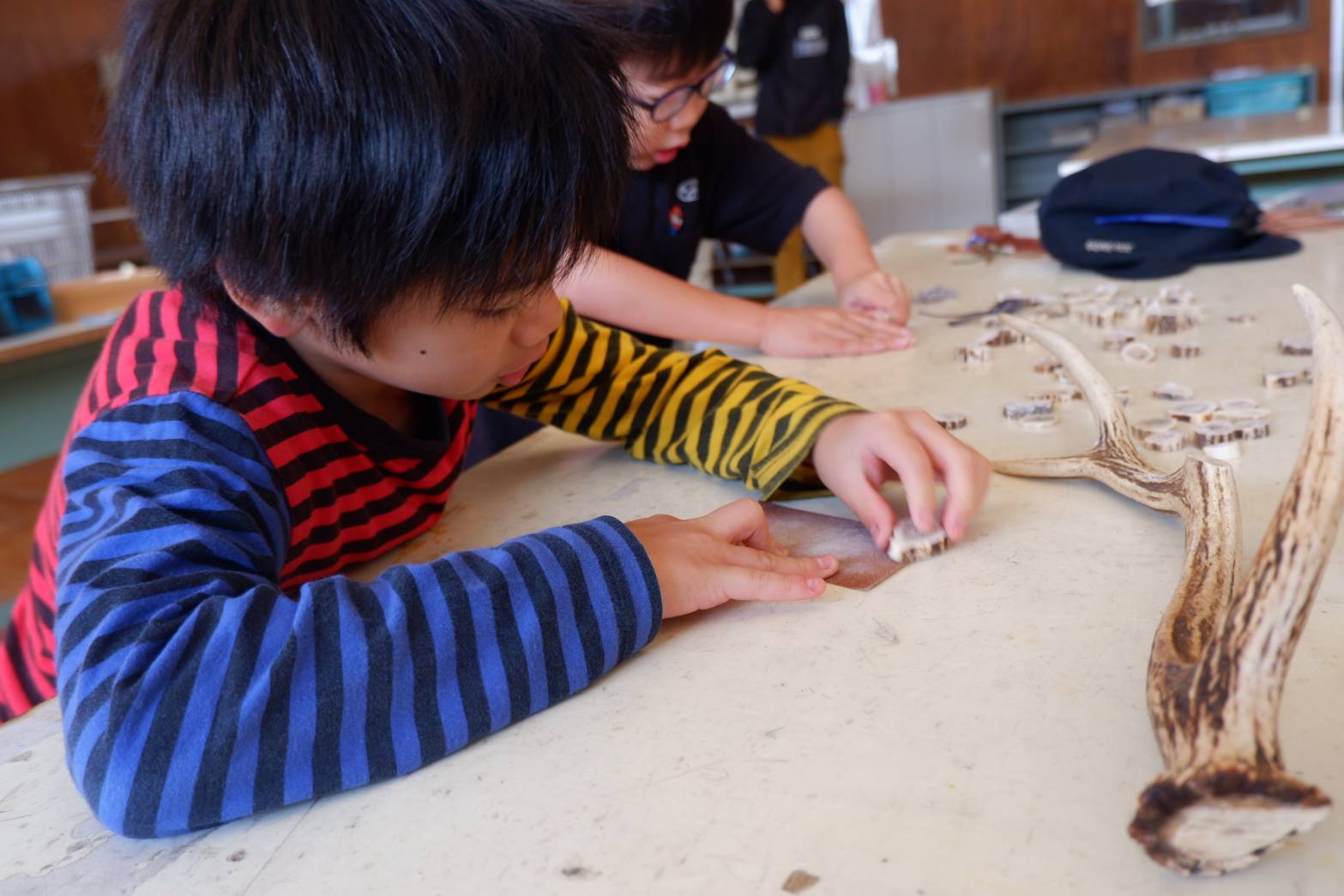 臭さをとろうと夢中でやすりをかける子どもたち。