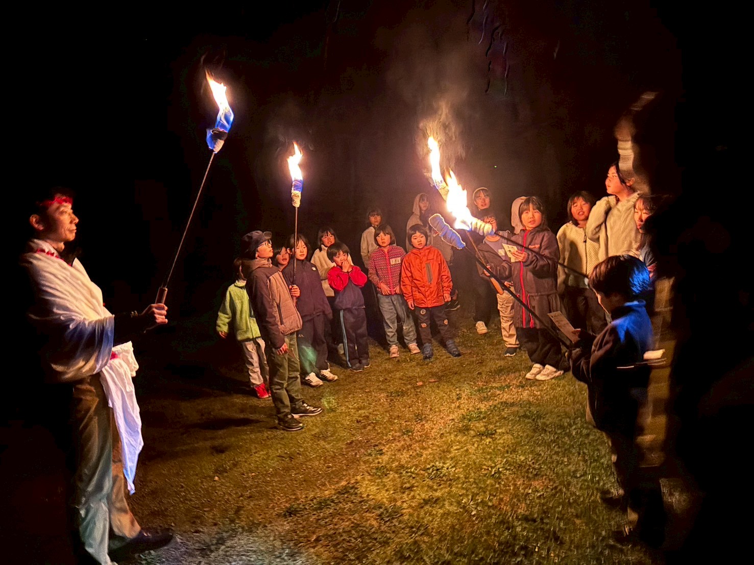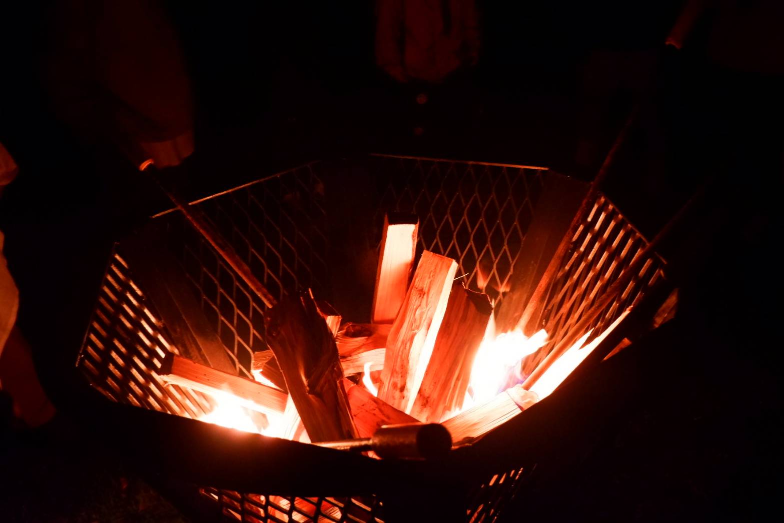 「燃えろよ燃えろ」を火を囲みながらみんなで歌い、炎が燃え上がるのを楽しみます。