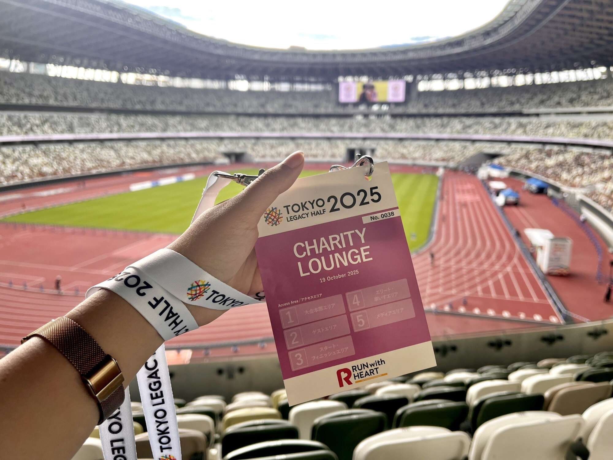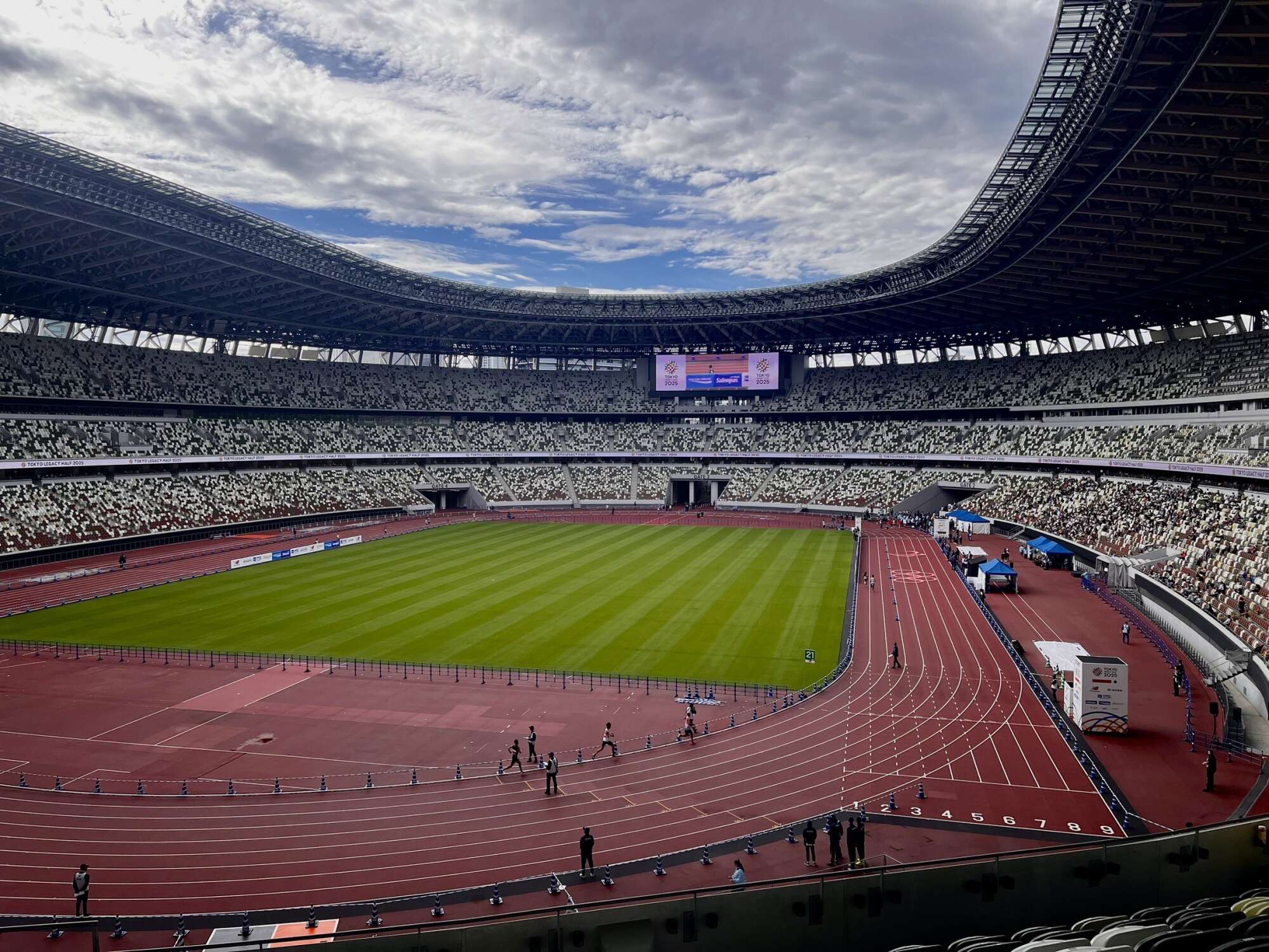 JEEFのチャリティランナーの皆さまがハーフマラソンを走り終えるのを待つ間、私は会場内を見学する機会をいただきました。国立競技場の中に入るのは今回が初めてで、ここが東京2020オリンピック・パラリンピックでも使用された場所であることを知り、とても感動しました。スタジアム内ではランナーのフィニッシュを目の前で見ることができ、参加者の皆さんの努力と熱意に深く心を打たれました。特に、障がいを持ちながらも懸命に競技に取り組む方々の姿には強い感銘を受けました。観ているだけでも、多くの前向きなエネルギーを感じ、私自身も力をもらうことができました。