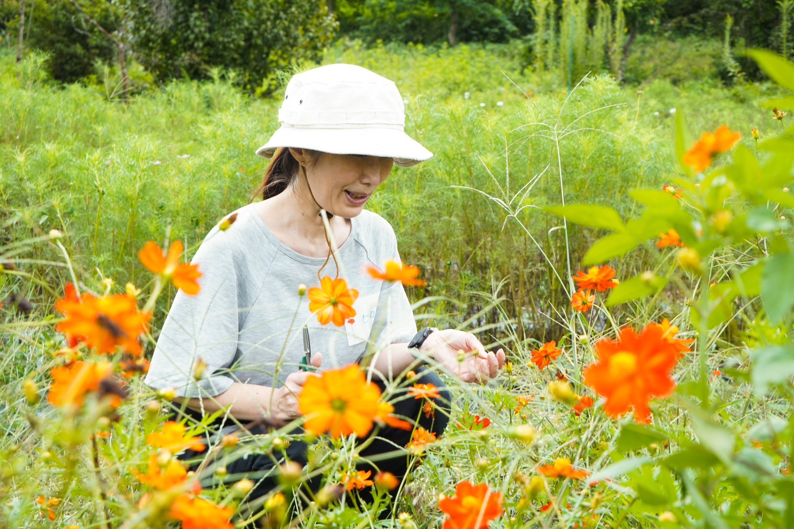 まず伺ったのは、川崎市麻生区にあるオーガニックフラワーファーム、吉垣花園さん。里山まるごとを使って、お花の無農薬・無化学肥料栽培を行っています。ここでは、里山を歩きながらお花摘み体験!元気にのびのびとした美しいお花たちと出会いました❁