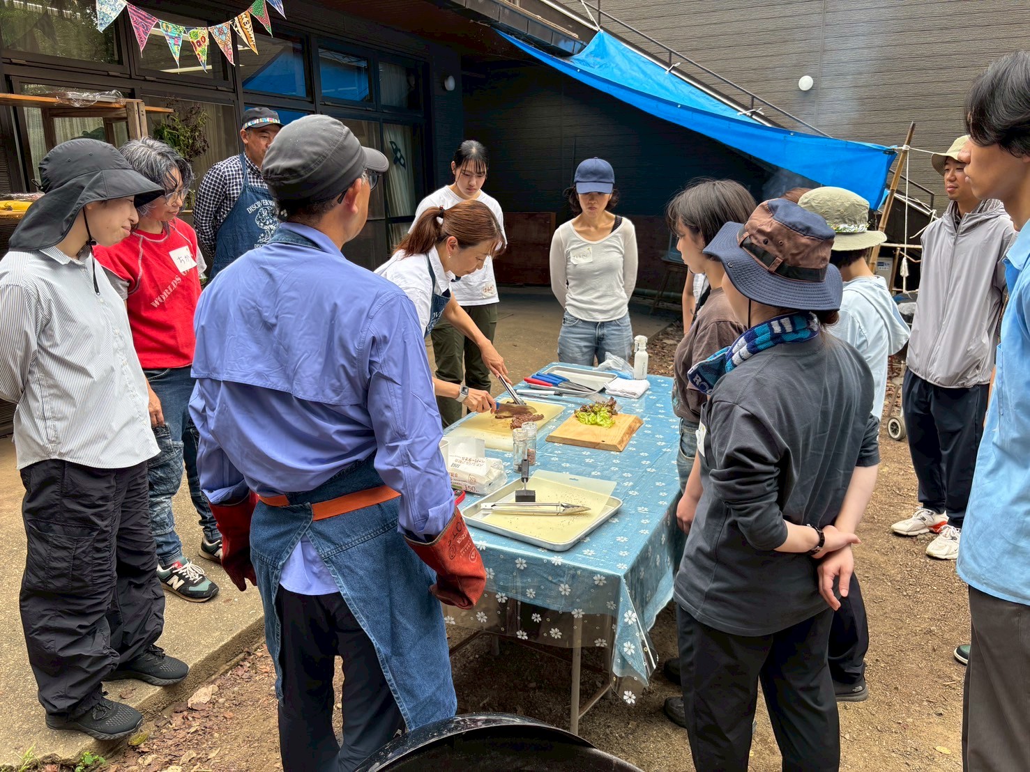 午後は、黒川少年野外活動センターさんに移動し、NPO法人国際自然大学校のみなさんと、地元野菜とジビエを使ったBBQです。