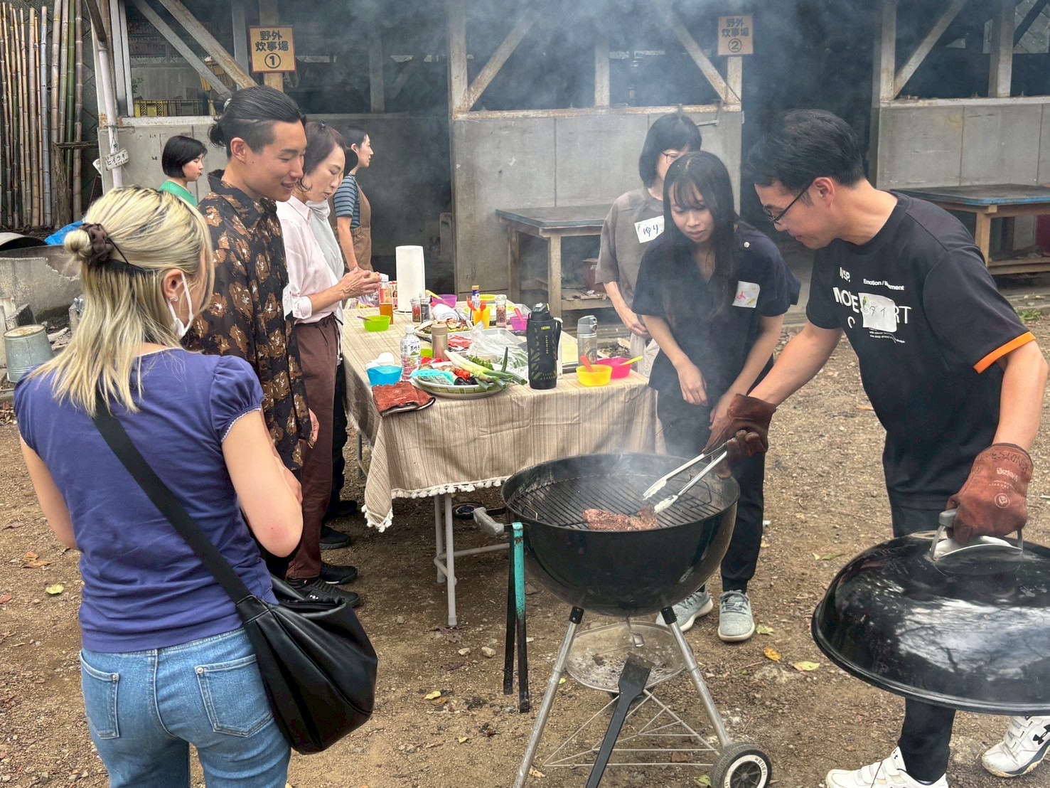 まず炭の置き方、野菜や肉の焼き方を教わります。