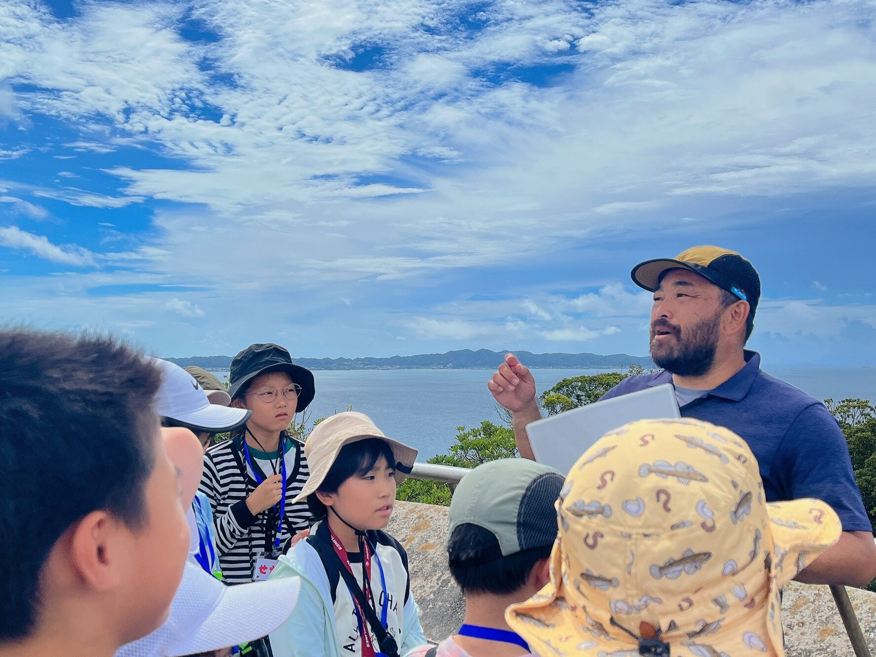 他にも、出発地点である東京の方向や、太陽の位置から東西南北を把握したり、大房岬の周囲を囲む海の景色を楽しみました。子どもたちがじんさんのお話を興味津々で聞く姿が印象的でした。