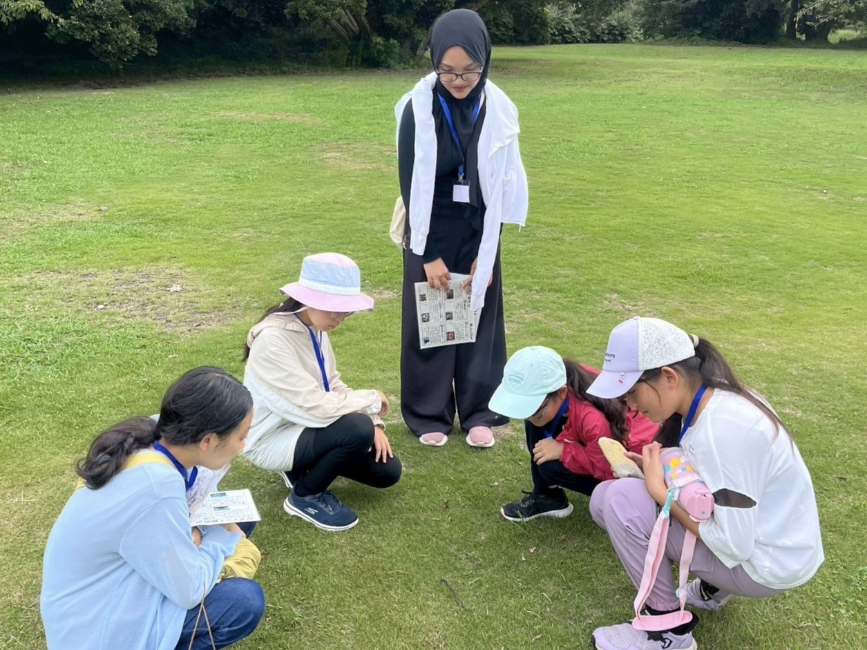 わたしが担当していたグループでは、都会ではなかなか見ない大きなミミズを発見し、「みみたろう」と名付けて、動き方を観察しました。しばらく見ていると雨が降り始めたため、ミミズが動きやすい場所へ移動させてあげました。安全なところまで動いていくのをみんなでじっと見守りました。