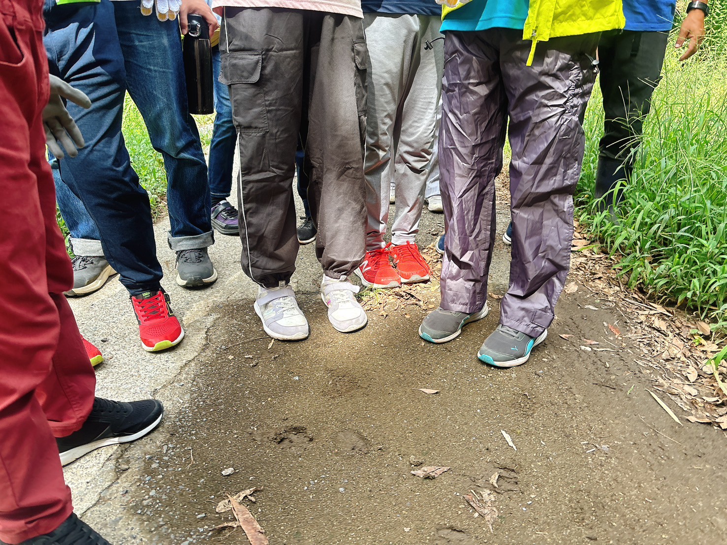 わたしたちは湿った地面に、数多くのイノシシの足跡を見つけました。