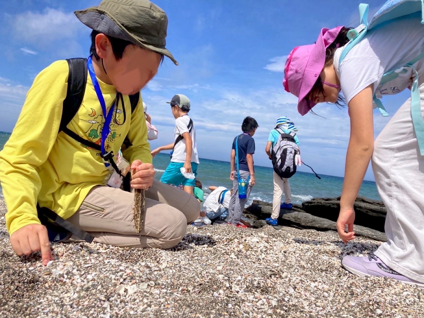 ほかにも、海岸に散らばる美しい貝殻を拾い集め、自分のお気に入りを持ち帰る姿も見られました。