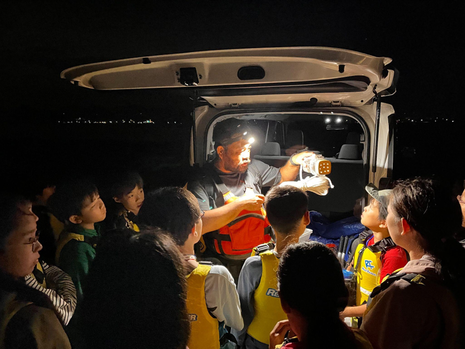 この日の最後は、夜の海へ!防波堤でウミホタル釣りを行いました。