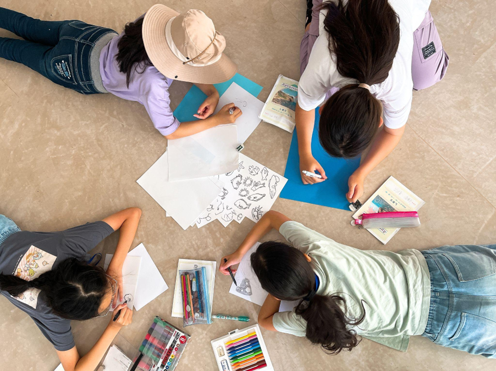 その間は泳いでくる生きものを観察しました。フグやクラゲ、さらには大きなエイまで!たくさんの魚が私たちの前を通り過ぎる様子を目にしてみんな大興奮でした。