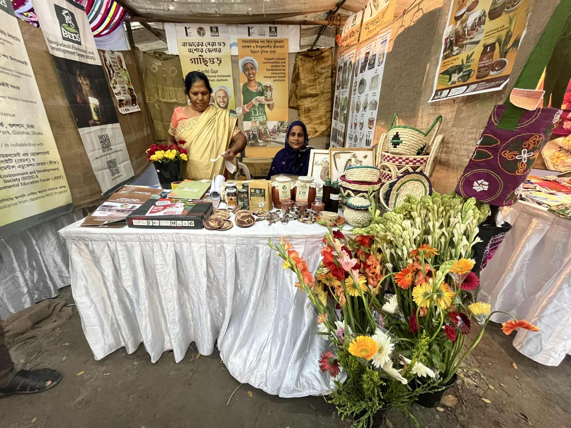 首都ダッカで11月6日~8日まで開催された「Dhaka Flow Fest」へ協同組合メンバーが出店し、商品販売と取組みの紹介を行いました。
