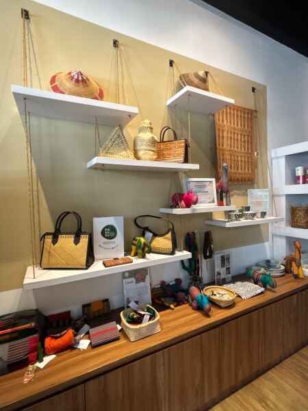 その後、ジャカルタ市内のNGO PARARA を訪問させていただきました。PARARAは、インドネシア各地の地域産品や伝統的生産活動を社会に広めることを目的とした団体で、NTFP(非木材林産物)を軸としたフェアトレード商品を扱っています。施設内には販売スペースやミーティングルームが併設されており、地域団体やNGOの活動拠点としても活用されています。