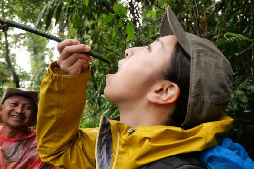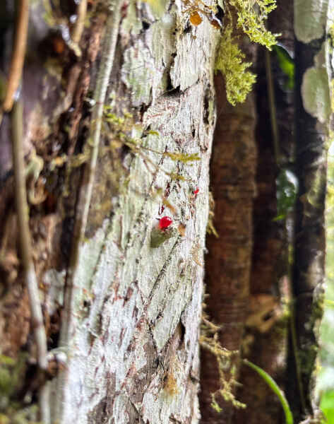 節間に水が蓄えられており飲用できる竹の仲間 Dinochloa scandens や、樹液が酸化して赤くなる Knema cinerea など、現地ならではの植物についての解説があり、自然環境を「見る」だけでなく「理解する」体験となりました。