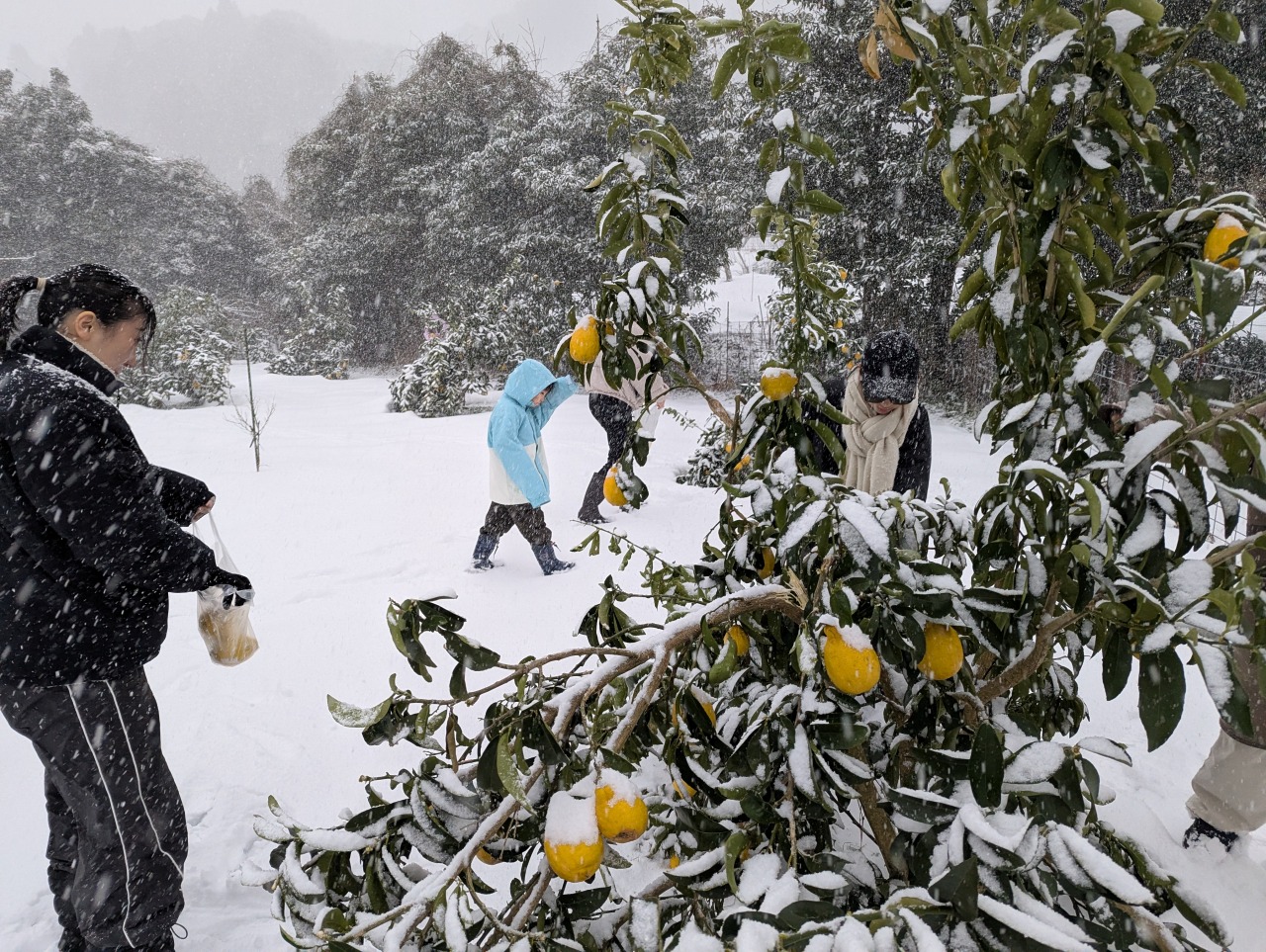 - 雪が降っていたけど大きなレモンを選んで収穫するのが楽しかった。