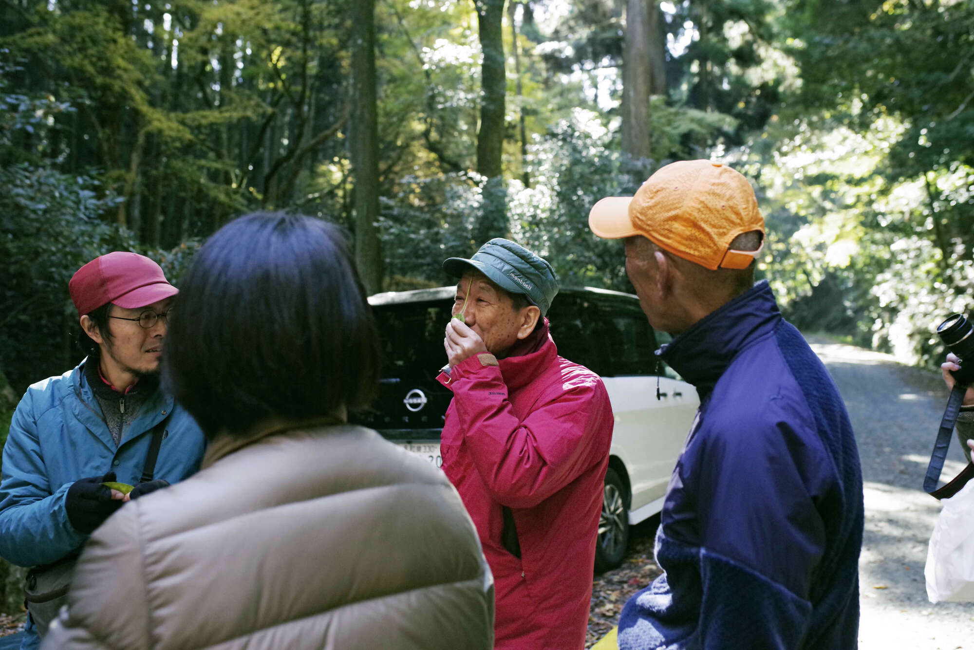 葉っぱの匂いを嗅いでみる(写真:前川俊介)