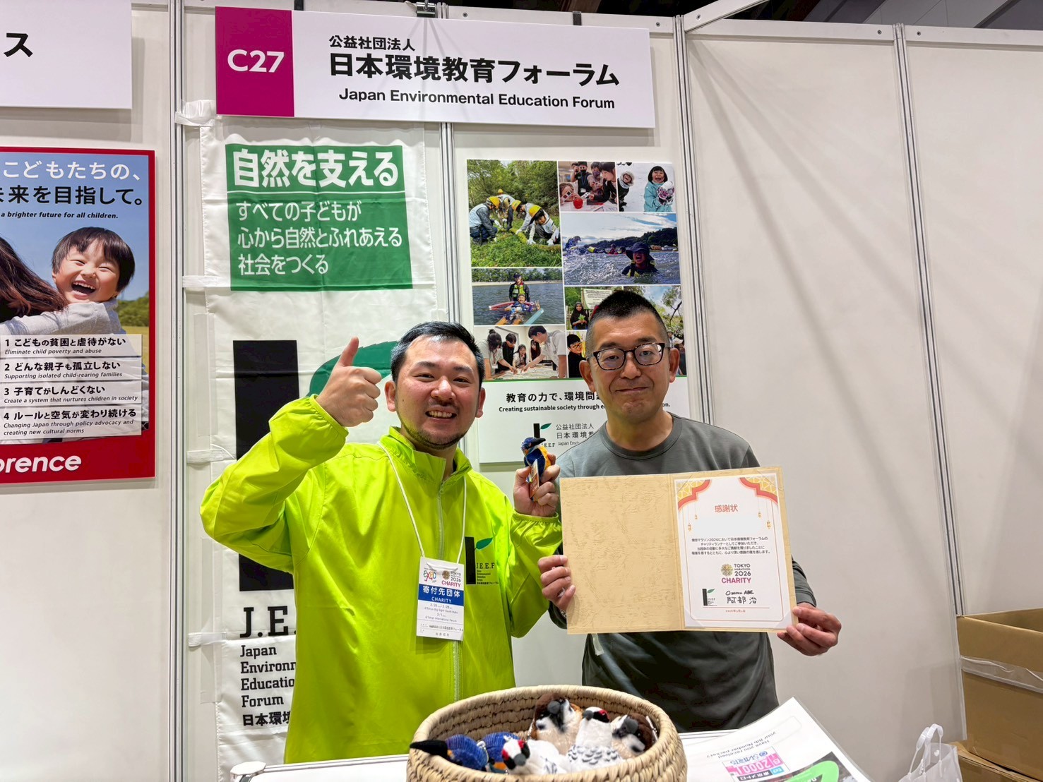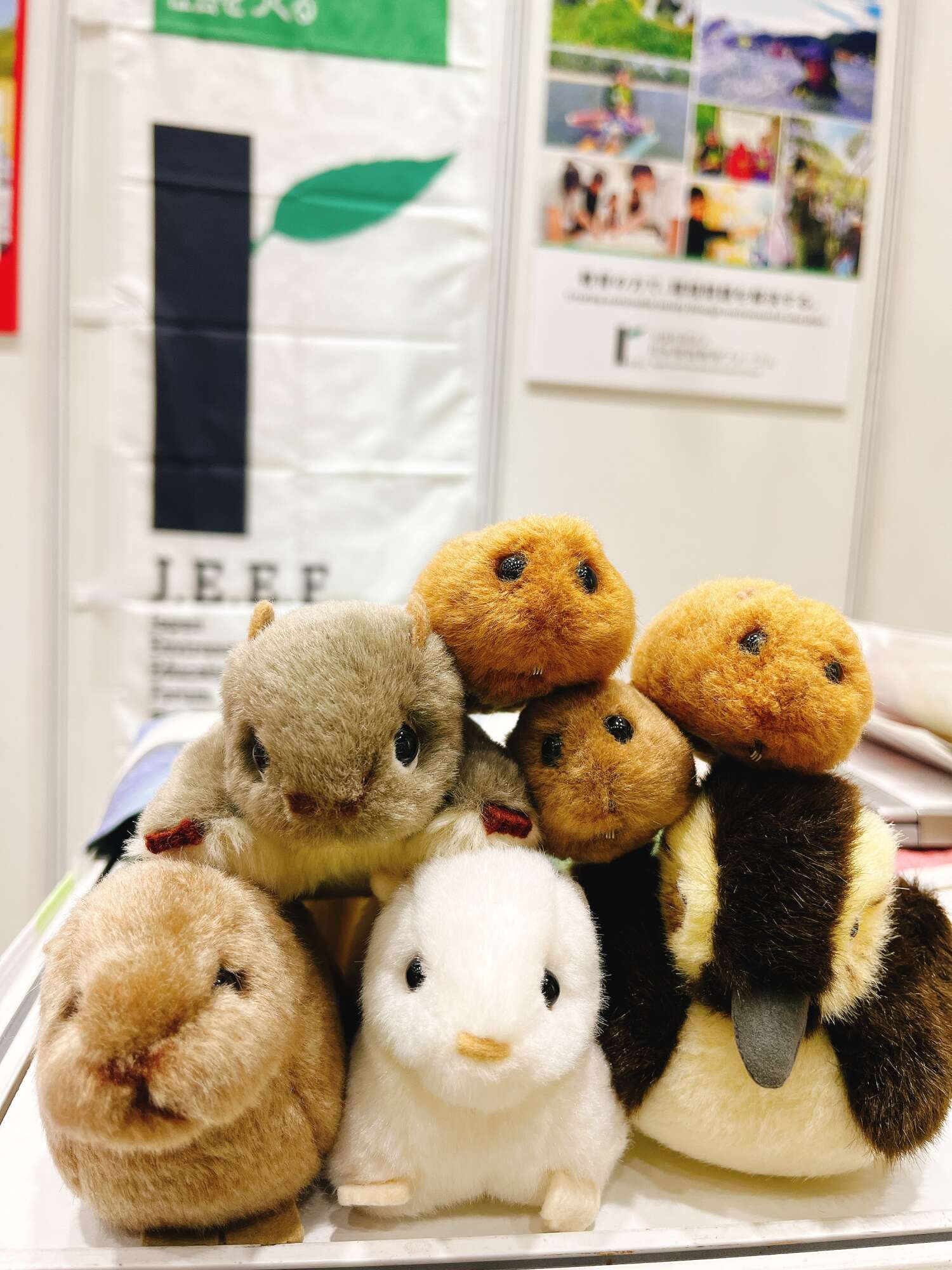 JEEFブースでチャリティランナーの方々を迎え入れる動物たち