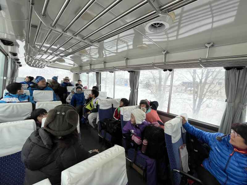 朝 10 時、旭川駅に子どもたちが集合しました。 少し緊張した表情も見られましたが、バスに乗り 込み、大雪山国立公園へ向かう頃には期待でいっぱい。 大雪山に近づくにつれて雪深くなっていく 景色に、自然と会話が弾みます。