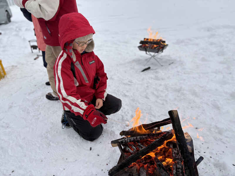 焚き火のそばでココアを飲み、焼きマシュマロを味わいながら、 火をつける体験や、火のぬくもりをじっくり感じる時間を過ごしました。