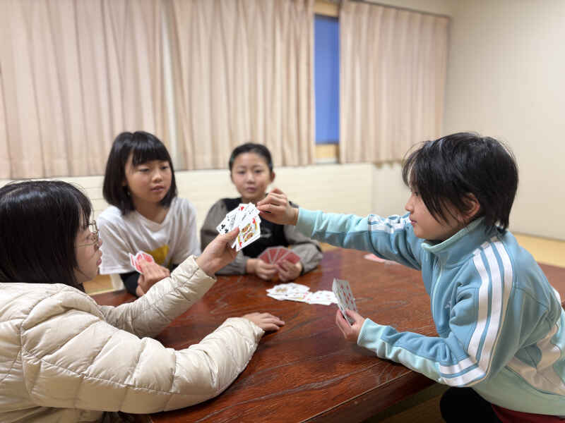 夕食後は部屋に戻り、自由時間です。 トランプやカードゲーム、ボードゲームを囲み、初めて会った子同士でもすぐに打ち解け、楽しい時間を過ごしました。