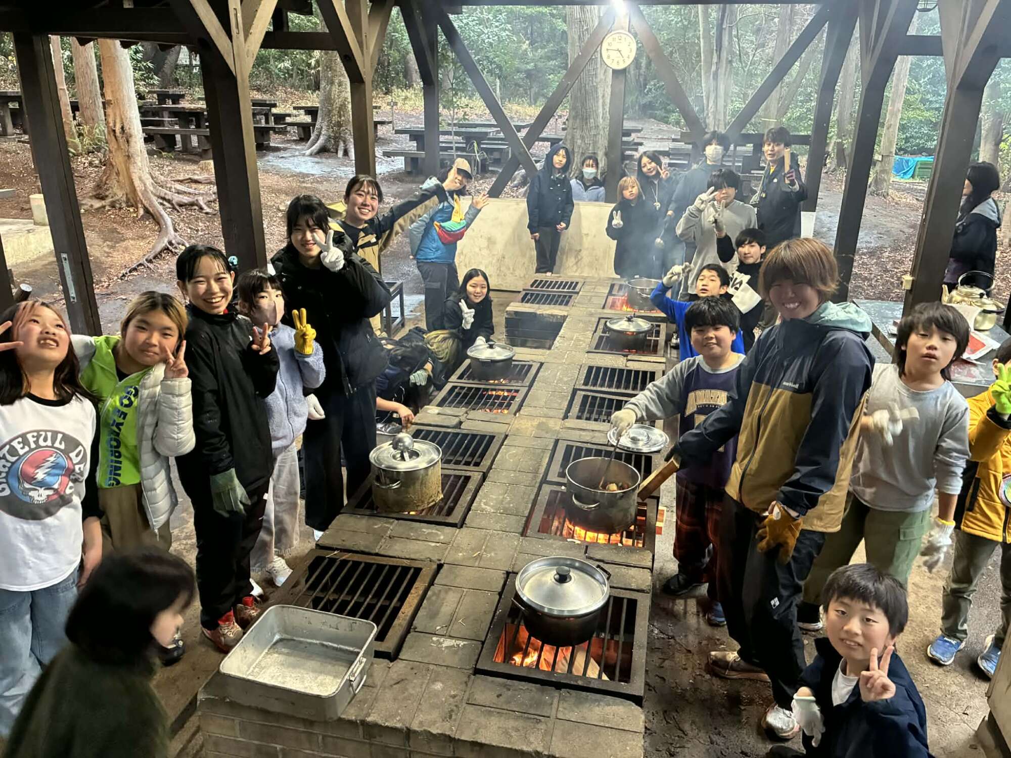 みんなで作ったカレーライスは特別な味!鍋のカレーはもちろん空になるほどたくさん食べていました。また、煤で黒くなった鍋をきれいに磨いたり、自分の食器を洗ったりと協力しながら過ごしていました。
