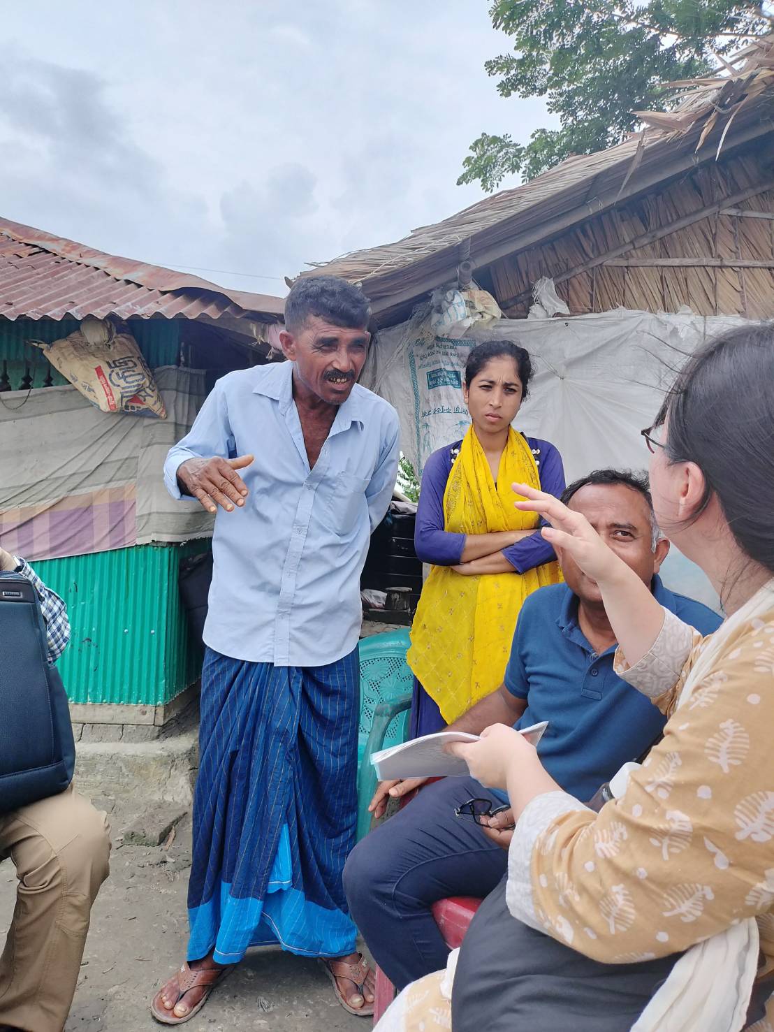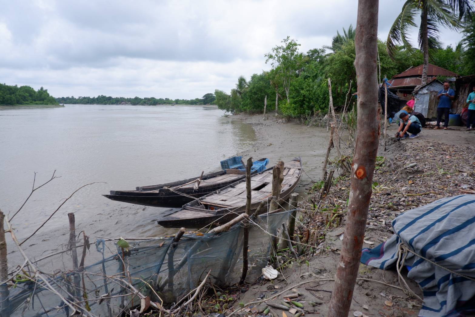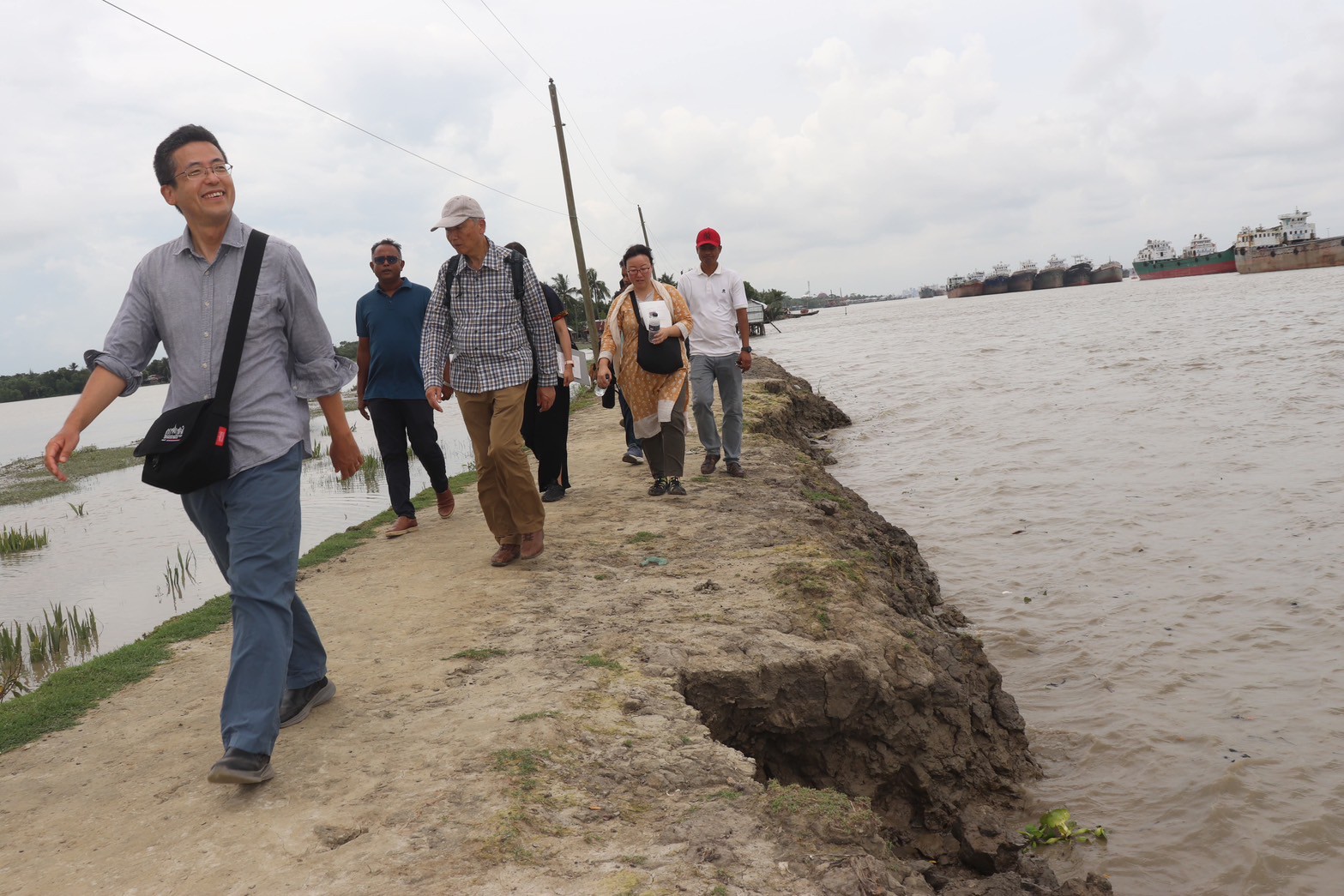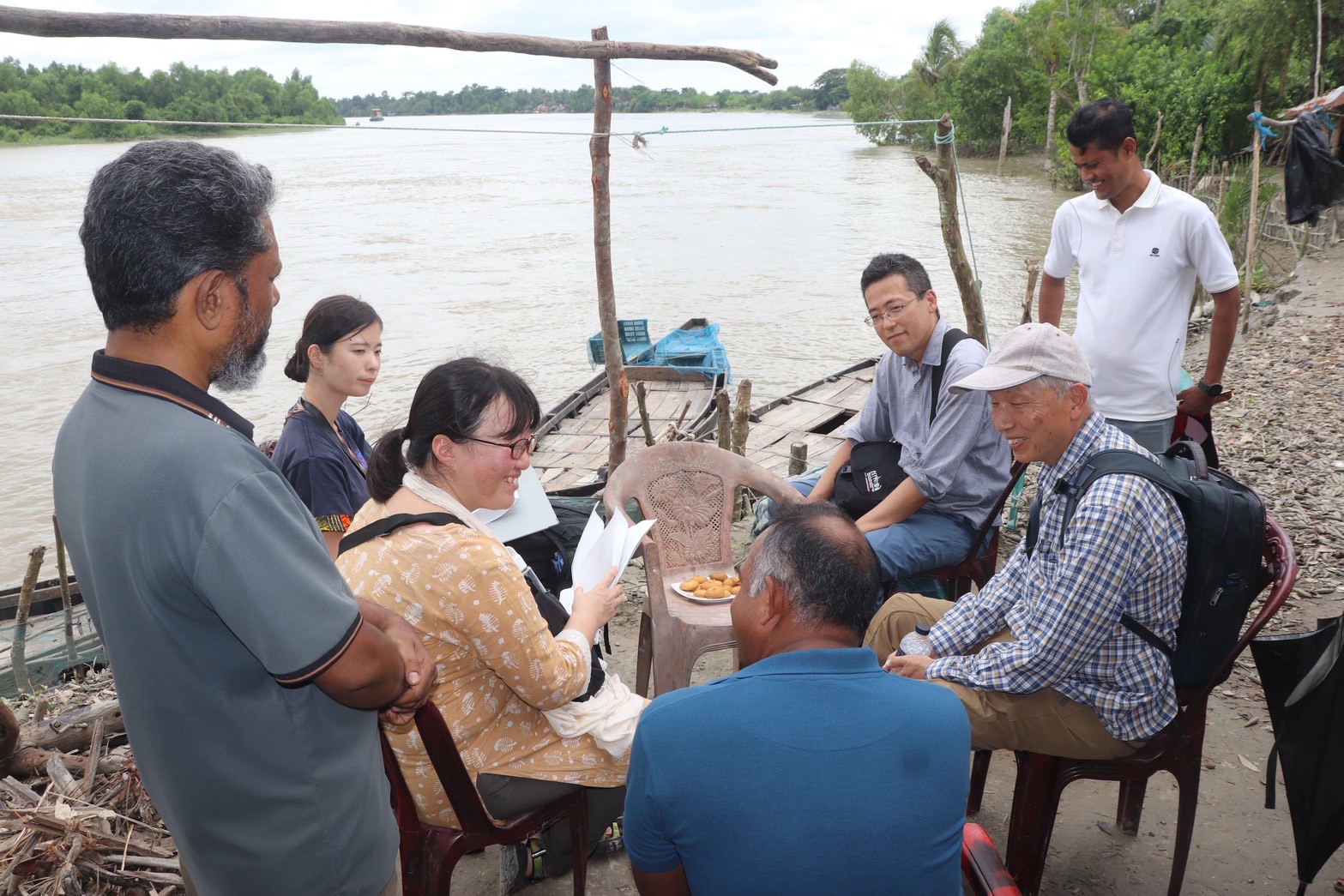 今回訪れた地域は、河岸浸食が進行しているエリアで、堤防の外側で暮らす漁師さんへヒアリング調査を行いました。このデルタ地帯は川が水路のように入り組んでいるため、サイクロンなどの自然災害が起きると、洪水が起き、それによって河岸浸食が引き起こされ、このエリアに住む住民の深刻な課題となっています。