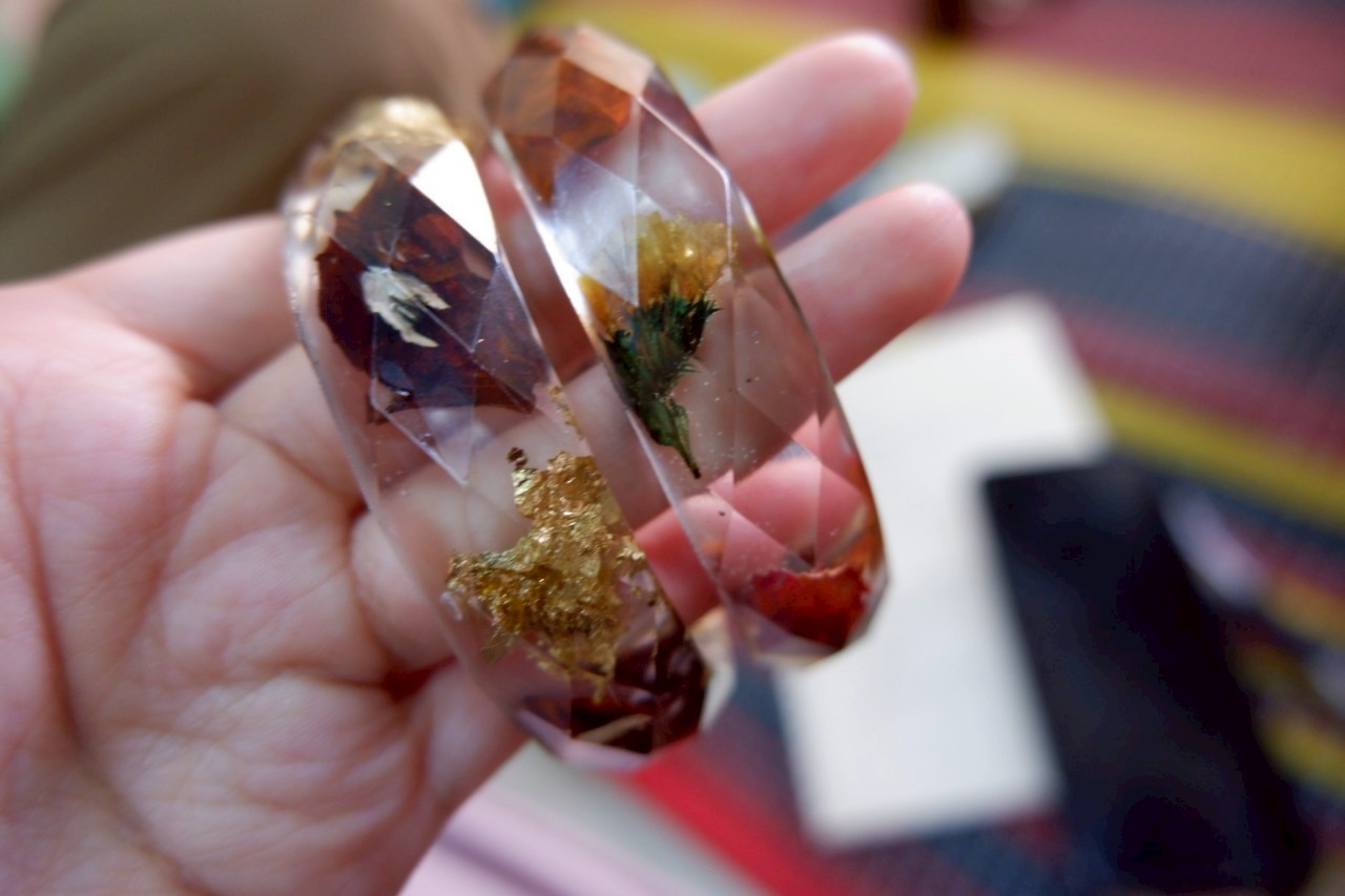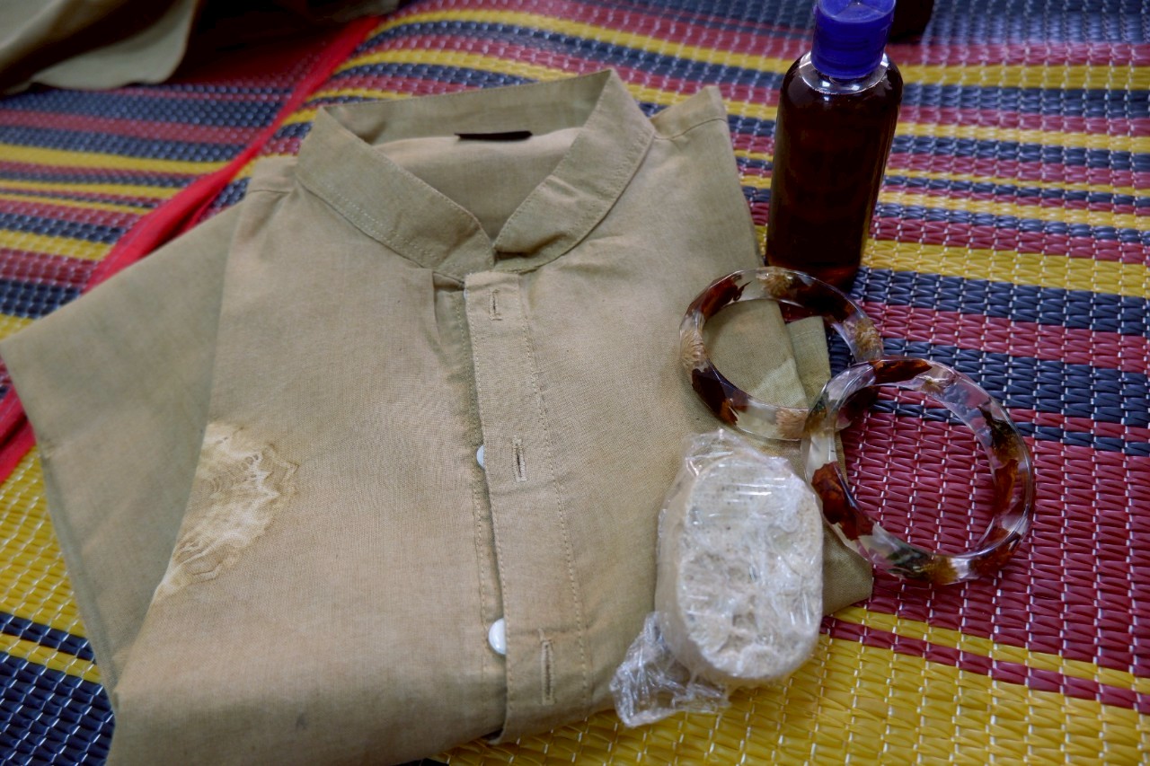 手工芸品としては、レジンの腕輪、草木染めシャツ、オイル、石鹸の4種類があり、すべてに力を入れて販売したいとのこと、熱意を込めて語られている姿がとても印象的でした。