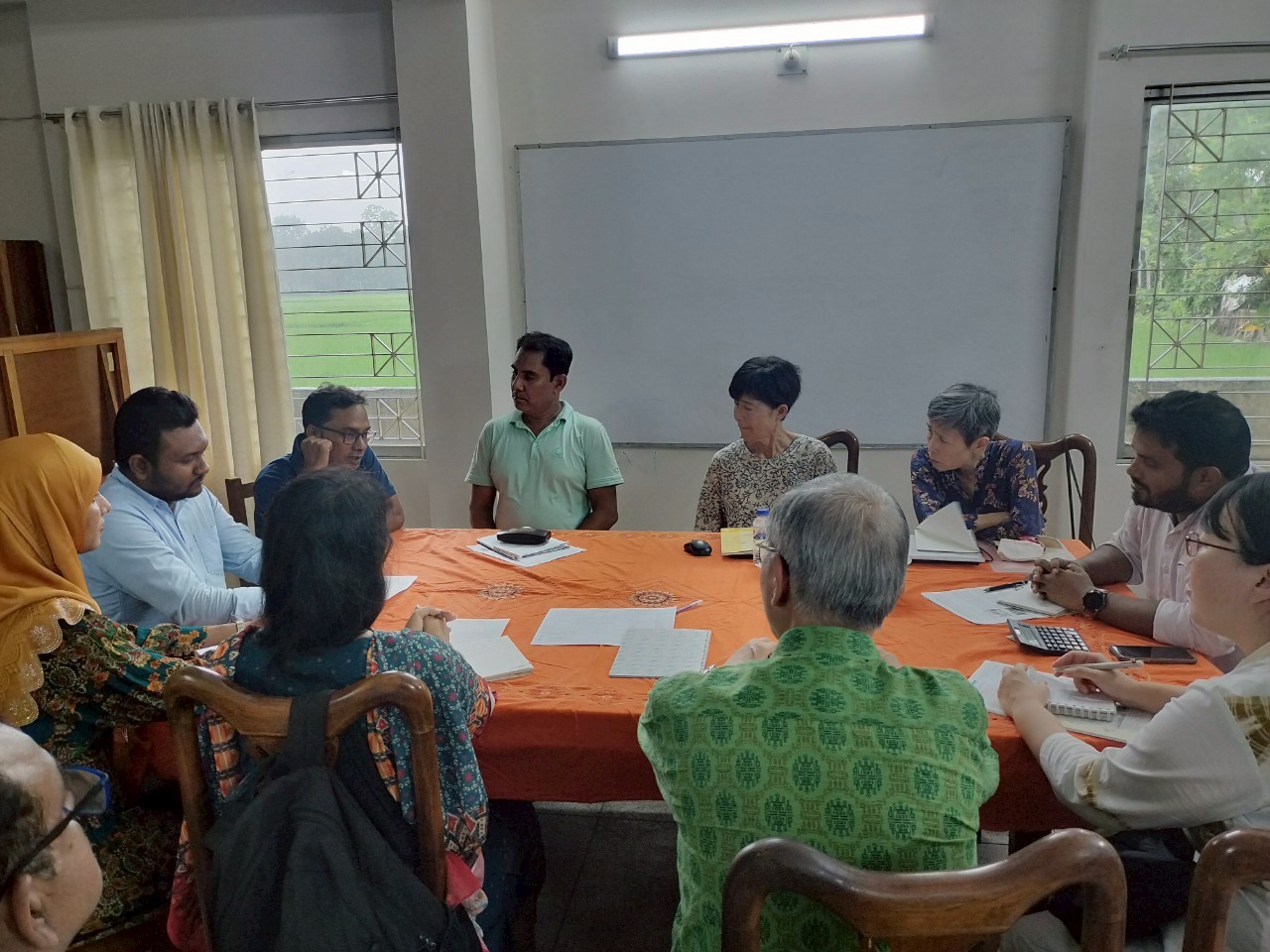 ジョショール県で1999年から活動を継続している日本のNGOをBEDSスタッフ8名とともに訪問させていただきました!日本バングラデシュ文化交流協会(JBCEA)さんの事務所は、アグロツーリズムで訪れた農園の近くにあり、①学校給食 ②手工芸品 ③農業(大豆)を主な活動内容としているそうです。